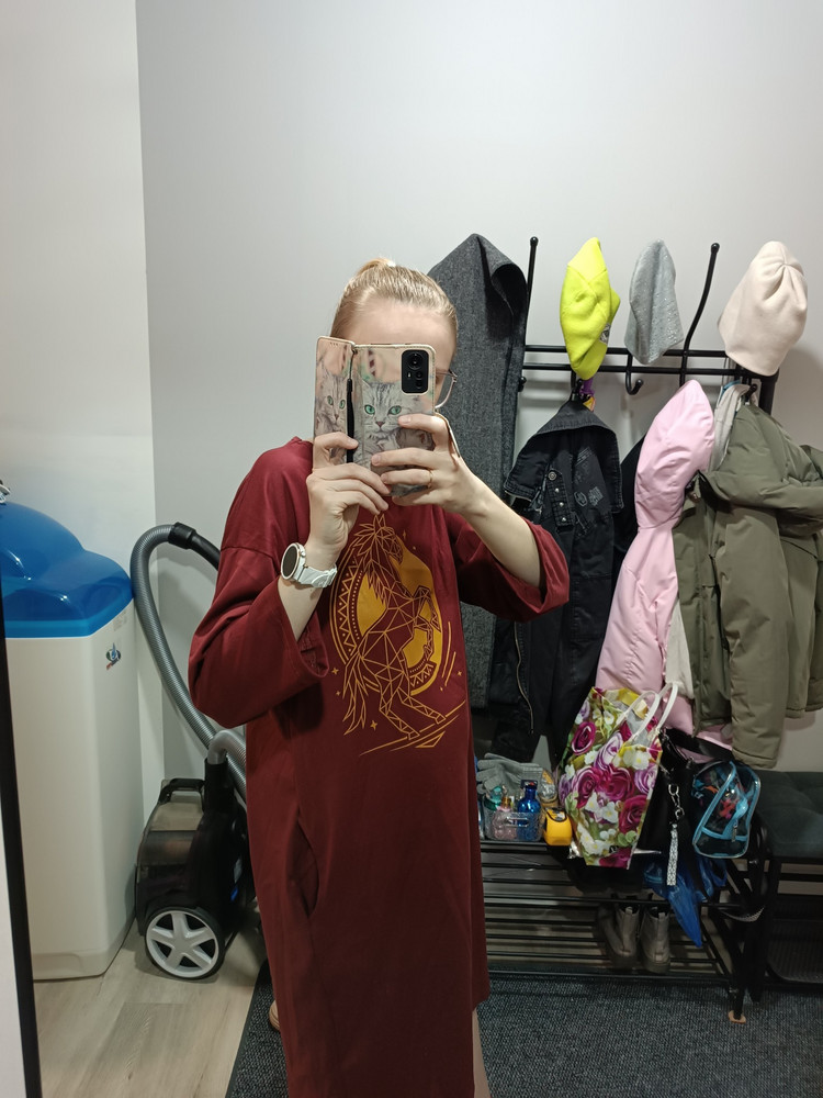 Для меня слишком большой размер, и даже как "оверсайз" не применить именно в моем случае - плечи и карманы на тунике уползли вниз, видно, что для меня огромный размер.